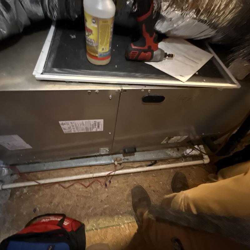 A technician in Perry, Georgia tested auxiliary heat strips to confirm proper operation in cold weather. They also applied enzyme treatment to the attic unit’s P-trap to help prevent drain clogs and reduce the risk of ceiling water damage.