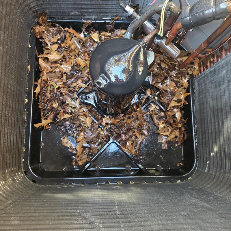 Technicians in Perry, Georgia completed a Fall HVAC inspection. They cleaned the drain line, applied enzymes to prevent buildup, and tested the emergency heat feature. They also cleared pine needles from the outdoor unit to improve airflow and maintain system performance.