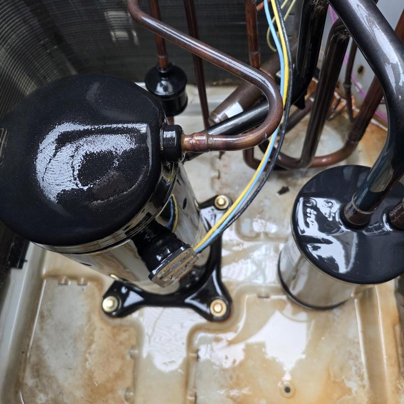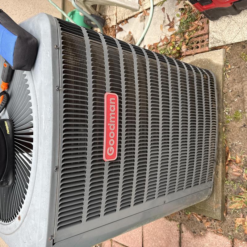 A technician in Warner Robins, Georgia performed a six-month system check on a Goodman 4-ton heat pump. The service included replacing filters and clearing drain lines to ensure proper function and airflow.
