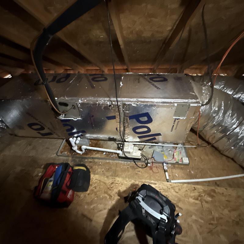 A technician in Perry, Georgia tested auxiliary heat strips to confirm proper operation in cold weather. They also applied enzyme treatment to the attic unit’s P-trap to help prevent drain clogs and reduce the risk of ceiling water damage.