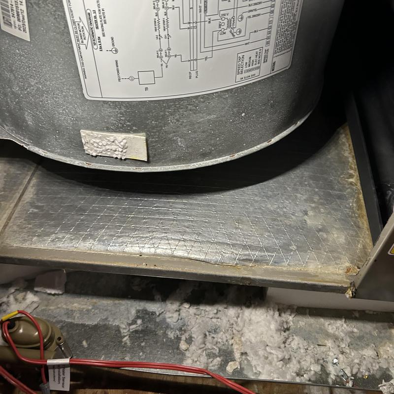 A technician in Perry, Georgia inspected a property and found detached ductwork resting on a water heater. The technician suggested a ductwork analysis to assess the issue and identify a suitable repair method.