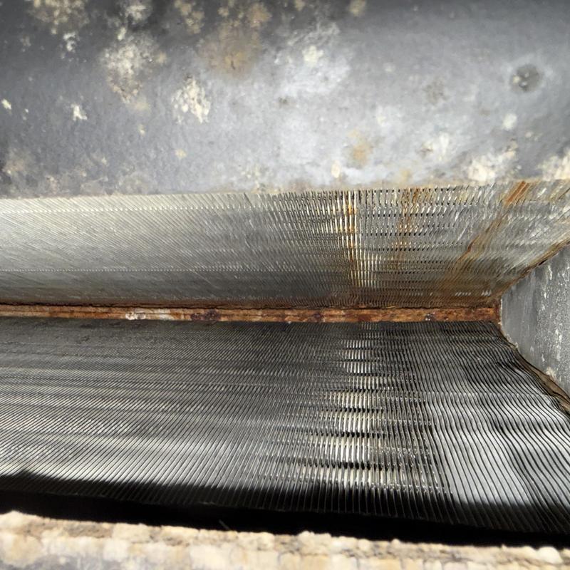 A technician in Perry, Georgia cleaned an indoor HVAC coil to fix poor airflow caused by dust and debris buildup. The technician restored normal system function and provided a quote for an airflow diagnostic to identify the source of the contamination.